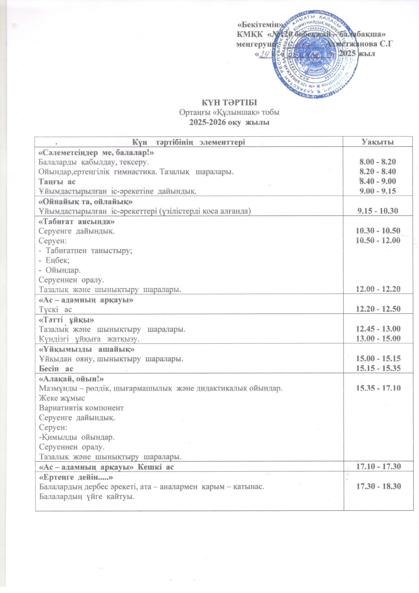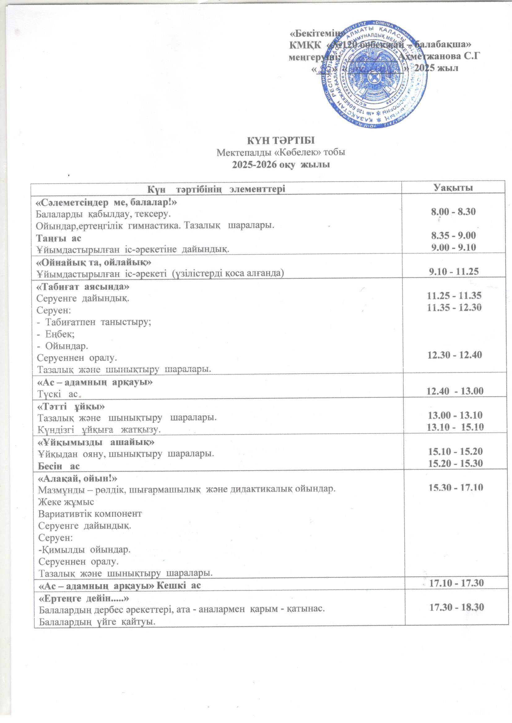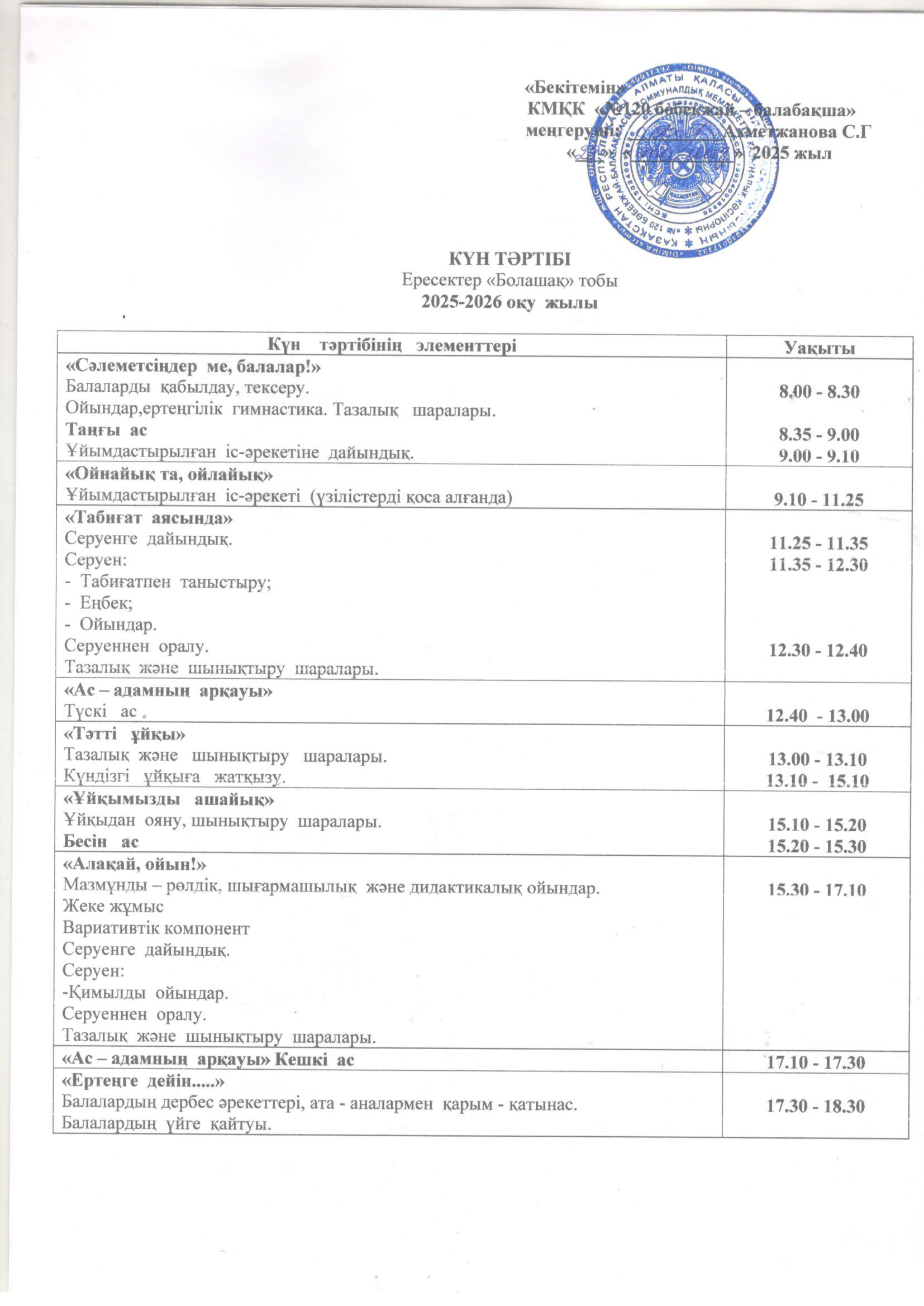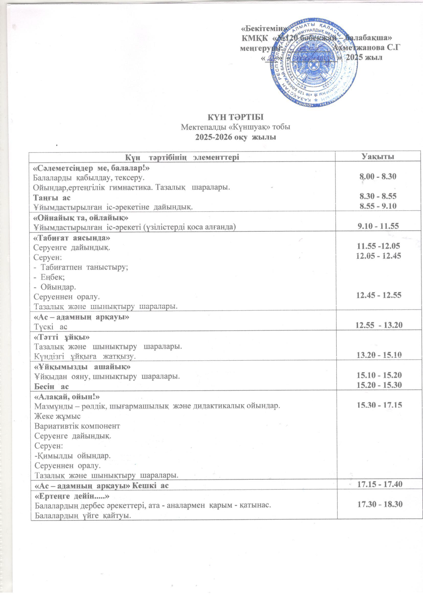2025-2026 оқу жылының күн тәртібі