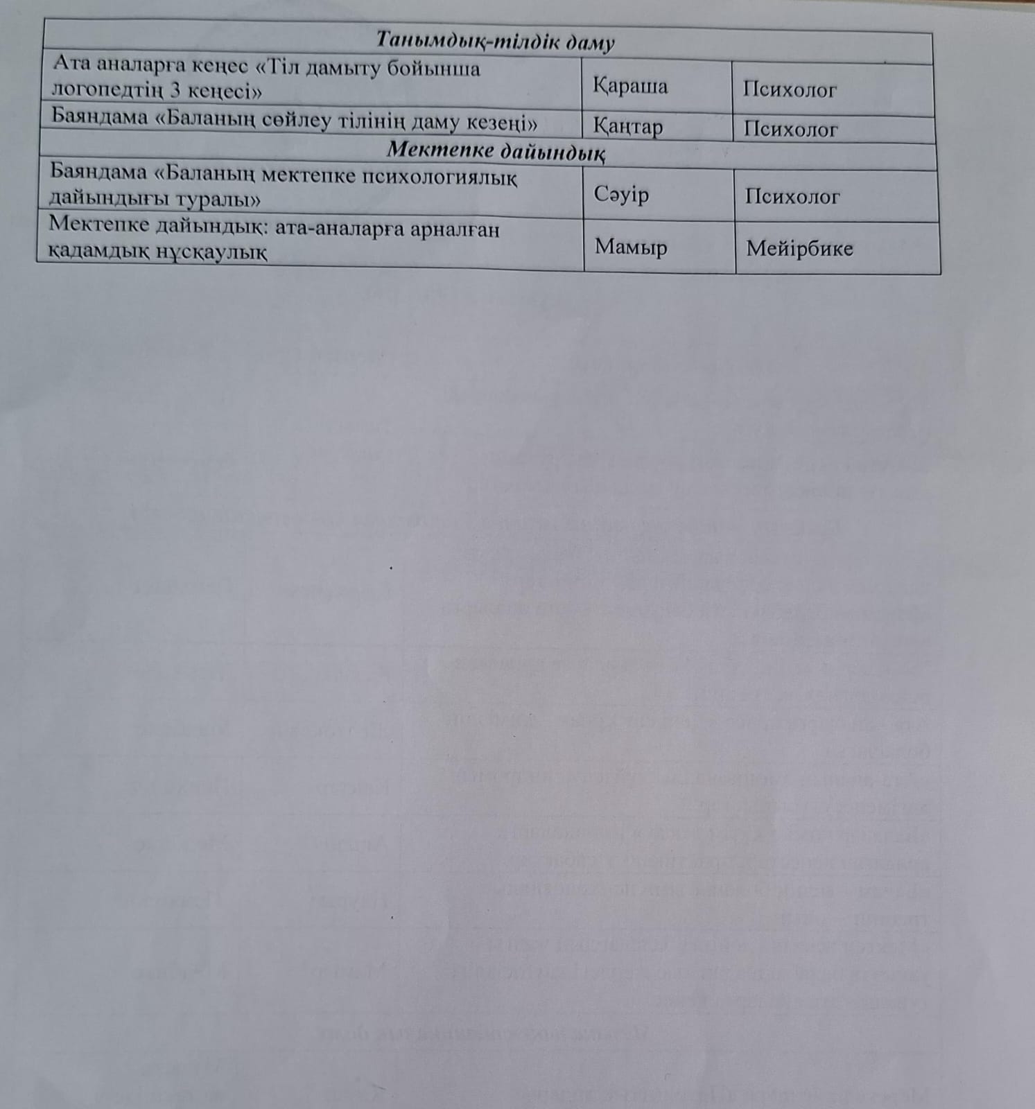 2023-2024 оқу жылына арналған консультациялық пункттің жұмыс жоспары